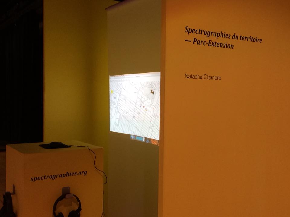 Lors de balades exploratoires, Natacha Clitandre et l’équipe de l’Agence Topo invitaient les résidents et les travailleurs des quatre arrondissements concernés par le projet (Outremont, la Petite-Patrie, Parc-Extension et Ville Mont-Royal) à réfléchir à leur environnement en s’attardant aux détails urbanistiques que l’on y trouve. Les participants ont pu réaliser des textes, des photographies et des captations sonores qui ont été déversés sur une site web dessinant petit à petit une cartographie de récits humains. Une application conçue par la firme Anagraph rendait toutes ces manipulations réalisables par les participants eux mêmes. qui inscrivaient leurs témoignages géolocalisés sur la page Spectrographies.org.