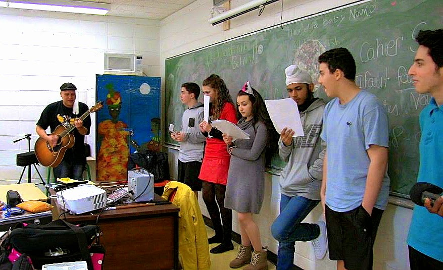 Grâce à la passion de l’enseignant Hugo Rivest, une trentaine de jeunes de secondaire 4 et 5 ont pu participer à ce projet. Shauit s’est prêté au jeu, et a reçu avec humilité les commentaires et les suggestions des élèves concernant sa chanson. Il est ressorti la tête (et les oreilles!) pleines d’orientations nouvelles pour son œuvre.